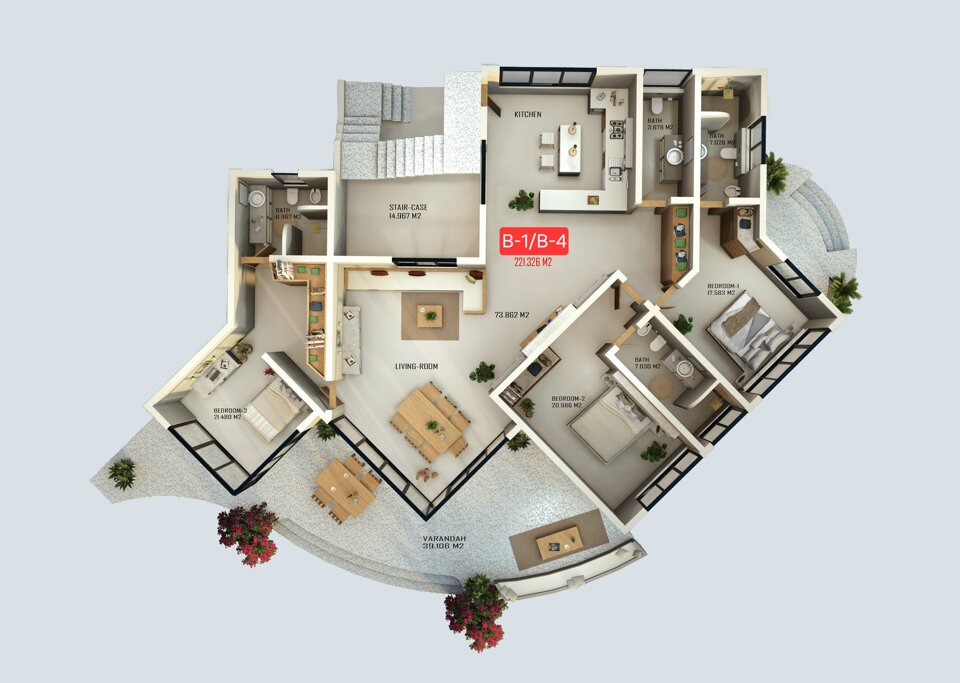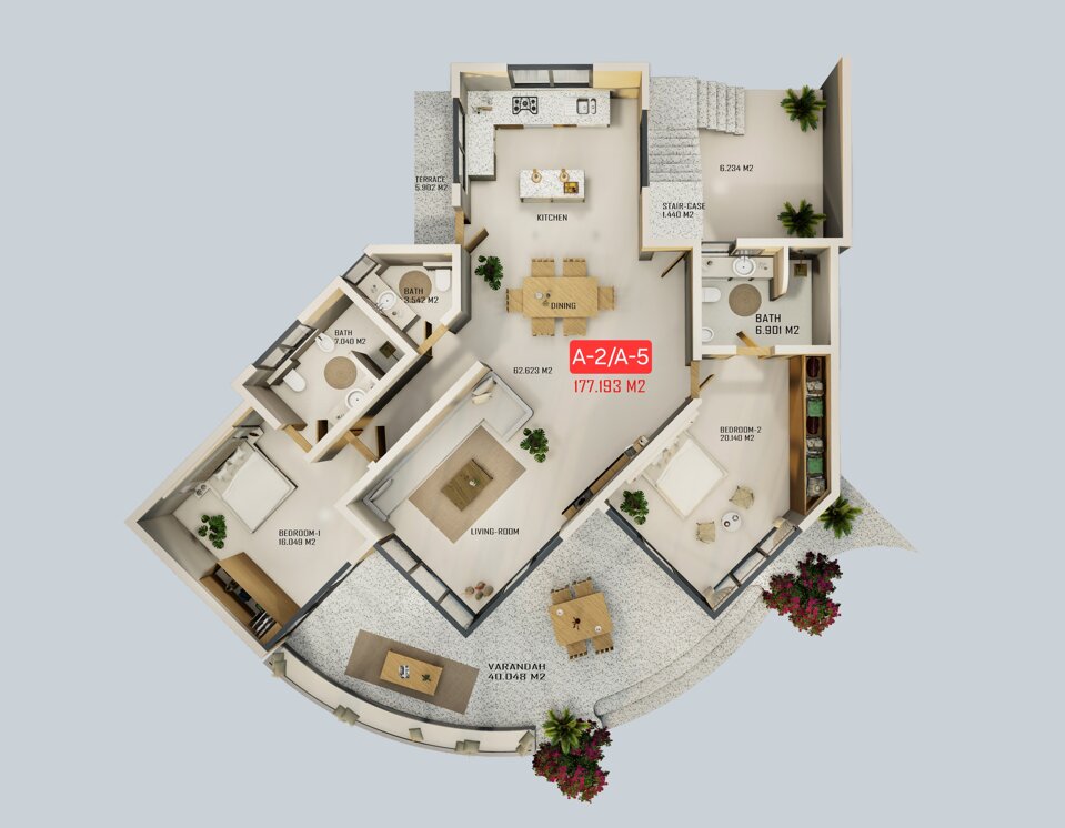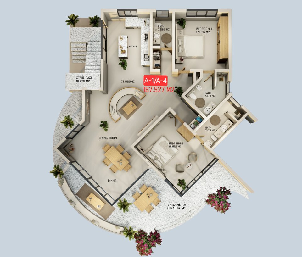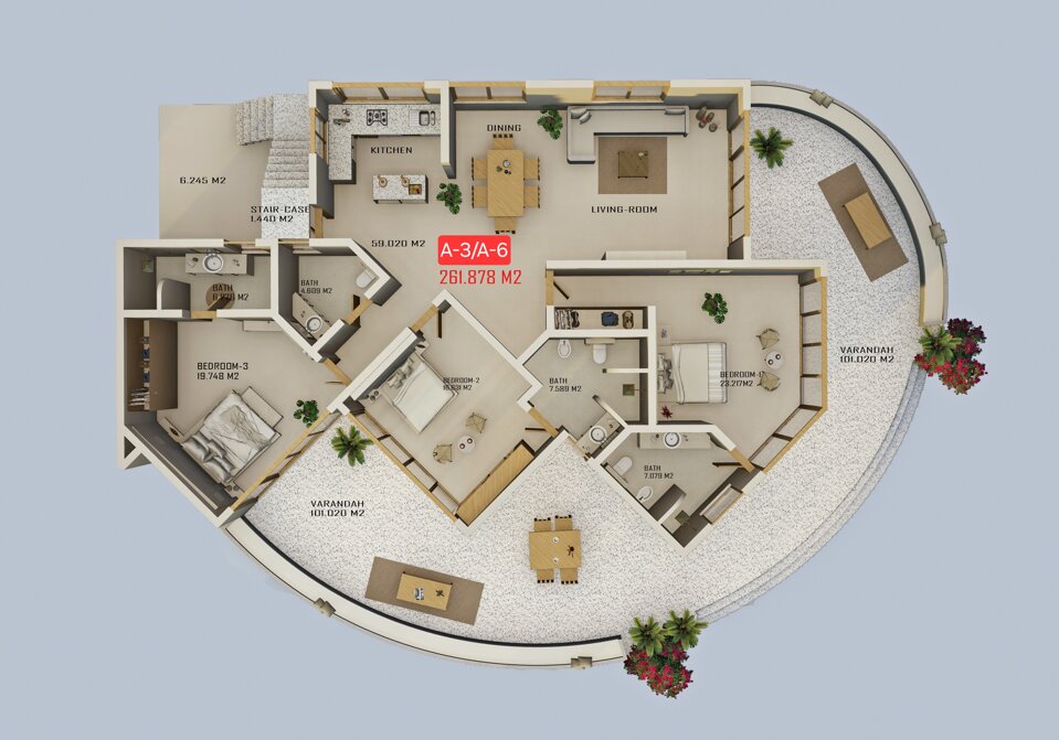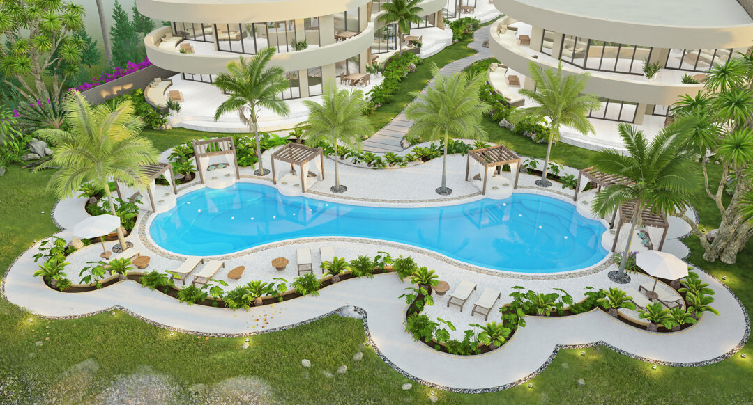 Ogni abitazione potrà godere di una piscina avvolta da uno splendido giardino tropicale, aree relax (gazeebo), area lavanderia e parcheggio privato.